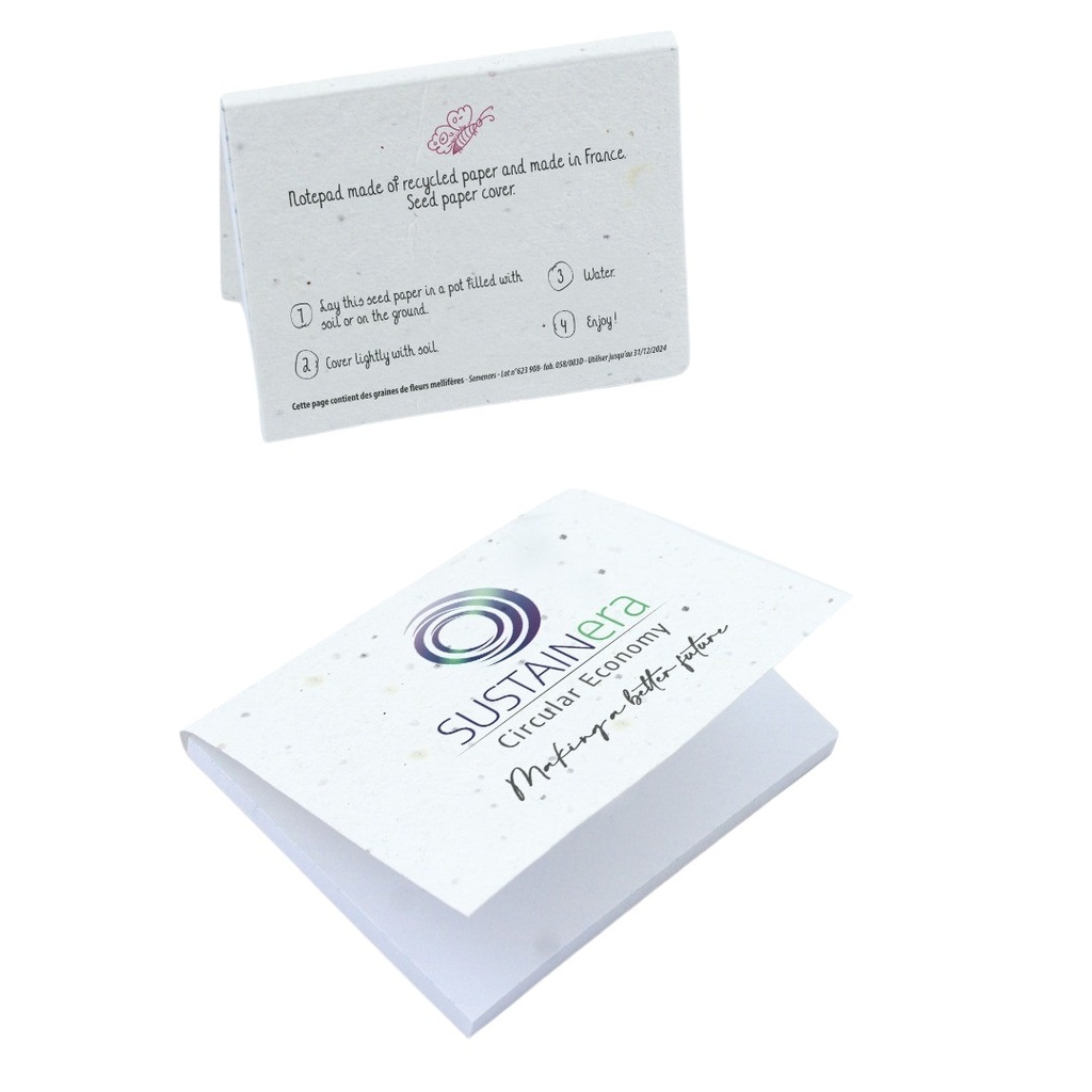 Mini bloc-notes avec couverture pourvue de graines, fabriqué en France.